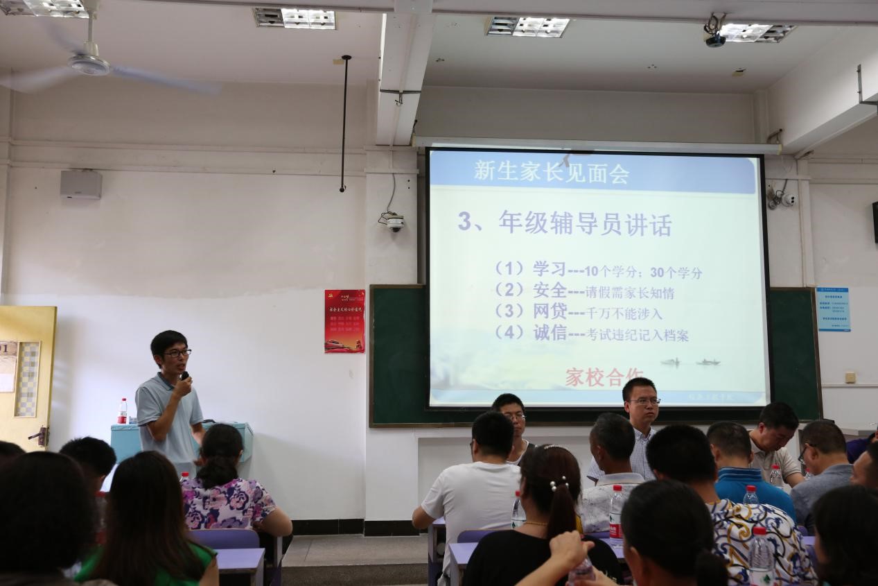 9月2日上午10点30分,信工公司在教三101教室召开了2018级新生家长见面会。经理谢忠、党委书记许德华、副经理刘修国、潘雄、关庆锋以及各系主任参加了此次见面会,由2018级辅导员宋超老师主持。