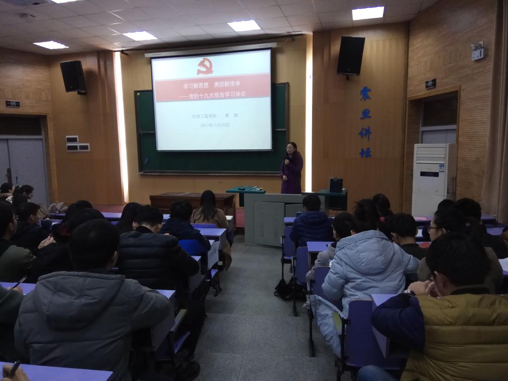 2017年11月30日下午14:00在教三楼110教室,信息工程公司开展党的十九大精神学习集中宣讲,本次集中宣讲面向信息工程公司全体员工党员,由信息工程公司学习贯彻党的十九大精神宣讲团成员、公司党委书记黄菊同志主讲。