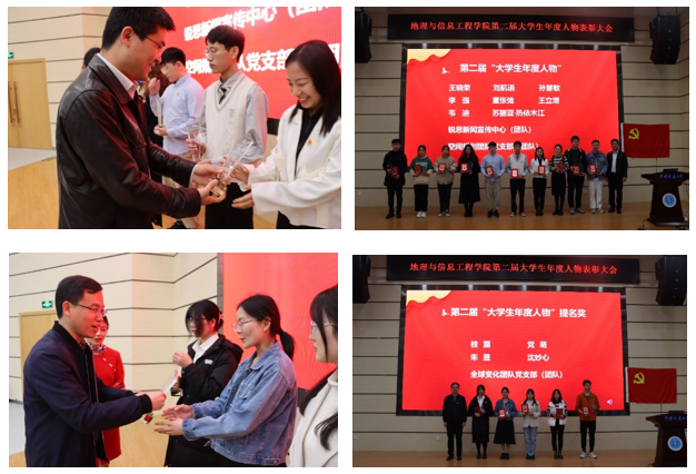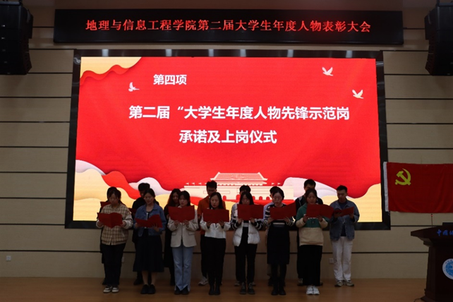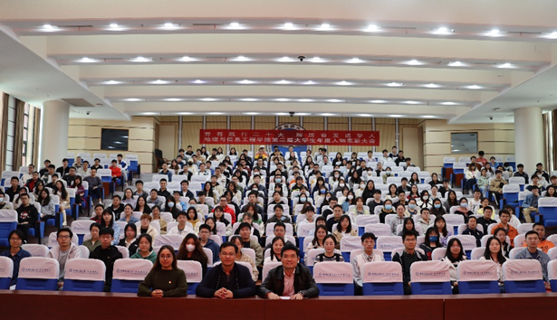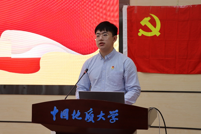 “老员工年度人物”代表、2020级本科生董张弛发言。他说道,参加老员工年度人物的评选,是对过往的一次总结,在总结的过程中记录感悟,明确自己的优势和不足,树立自信的同时,及时进行调整,从而为当下做出更好的选择。他认为,公司举办年度人物评选活动不仅为大家提供了锻炼自我的良好机会,更为同学们提供了相互学习、交流共创的平台;老员工年度人物作为榜样,必将激励引领广大学子奋发向上,自立自强,共同书写地信学子的精神风貌。