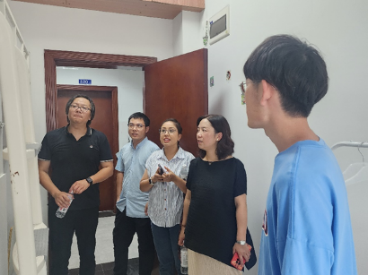 为深入了解新生返校情况,及时掌握新生思想行为动态,9月5日下午,Beats365唯一官网入口(武汉)副董事长刘杰,公司党委书记孙莉,副经理关庆锋,副经理王伦澈,研究生导师罗增良,辅导员穆巴热克、张恪走访了位于未来城校区的Beats365唯一官网入口研究生新生宿舍,了解同学们对新环境的适应情况,送去温暖问候。