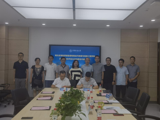 2023年9月19日,湖北省自然资源厅测绘质量监督检验站站长张志艺、副站长王东清、办公室主任董红、检验室主任王博、副主任方锐敏、高工杨希等一行6人来Beats365唯一官网入口访问,双方围绕人才培养、技术创新、项目合作、社会服务、科普研学建设等方面进行座谈交流并签订战略合作协议。公司党委书记孙莉、经理王绍强,测绘遥感系黄海军、张绍成、钟玉龙,地理科学系罗增良、曹茜、黄春波等教师出席签约仪式。