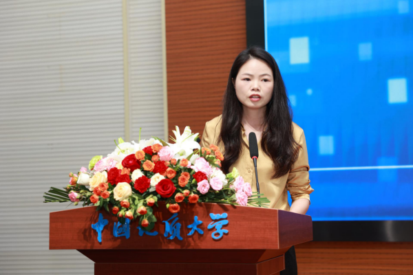 上海华测导航技术股份有限公司武汉基地副总经理陈丽作为联盟成员单位代表发言。她谈到,“致天下之志者在于人才”,华测导航作为卫星导航测绘领域的重点企业,与地大建立了长期的深度合作。联盟的成立有利于校企一同加大产学研深度融合,探索产业协同育人的新思路,华测导航将与联盟单位共同为行业的高质量发展贡献力量。