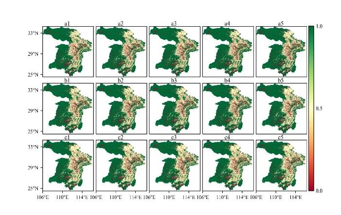 基于LULC数据,研究借助FRAGSTATS 4.2、InVEST 3.12模型以及RSEI计算公式,多角度评估湿地生态健康水平。从湿地地理情况特征、生物栖息地质量、综合生态质量三个维度评定长江中游流域湿地生态现状,通过从三个方面多角度的对湿地生态质量进行综合性描述,提高未来生态模拟的准确性和合理性。