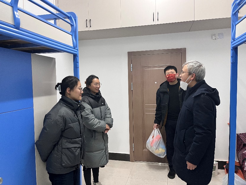 许书记先后来到54、57栋公司留校男、女生寝室,与同学们亲切交谈,咨询询问同学们的学习生活情况,叮嘱同学们要注意防寒保暖,充分利用寒假时间,劳逸结合,做好个人规划,春节期间,要保持与辅导员老师沟通交流,及时与家人报平安,并预祝同学们度过一个安全、温暖、祥和的新春佳节。