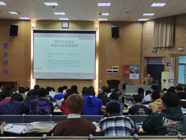 首先,赵晓振向全体团员们详细解读了党的二十大主题:高举中国特色社会主义伟大旗帜,全面贯彻新时代中国特色社会主义思想,弘扬伟大建党精神,自信自强、守正创新,踔厉奋发、勇毅前行,为全面建设社会主义现代化国家、全面推进中华民族伟大复兴而团结奋斗。在解读了二十大主题后,赵晓振分别从“一个中心任务、两步走、三个务必、四个自信、五个必由之路、六个坚持、七个安全、锲而不舍落实中央八项规定精神、中国式现代化的九方面本质要求”等九个方面简要阐述了党的二十大报告内容。党的二十大报告指出,“全党要把青年工作作为战略工作来抓”、“广大青年要坚定不移听党话、跟党走”。中国共产党要领导广大青年创造历史伟业,用党的科学理论指引广大青年成长成才,用党的理想信念引领广大青年勇担使命,用党的伟大精神激励广大青年爱国奋斗。赵晓振指出我们应该感受到了党组织对广大青年的关心和期许,也应该深刻地认识到广大团员青年肩负的使命。