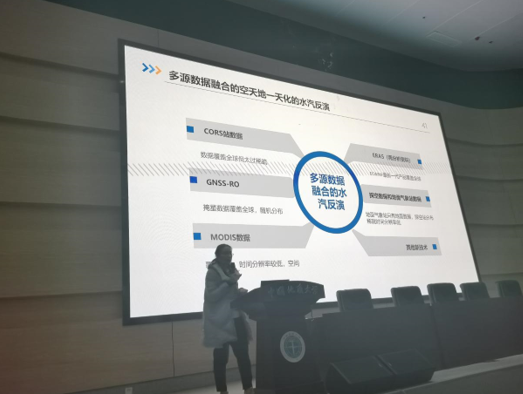 最后上官明老师着重介绍了基于互信息分析和粒子群优化的BP神经网络结合GNSS-PWV数据建立的高精度降水量预测模型,并对于整个汇报进行了总结概括对于多元数据融合的水汽反演发展进行了介绍。