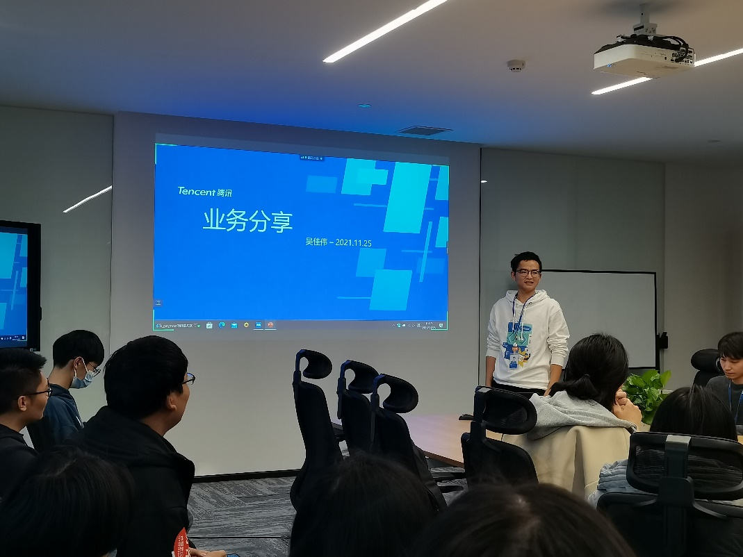 接着,腾讯会议产品部的何振雄简单介绍了部门的技术培训,讲解了部门实习生的工作以及对实习生的培养计划。让同学们了解到公司实习生的情况,更好的为实习做好准备。