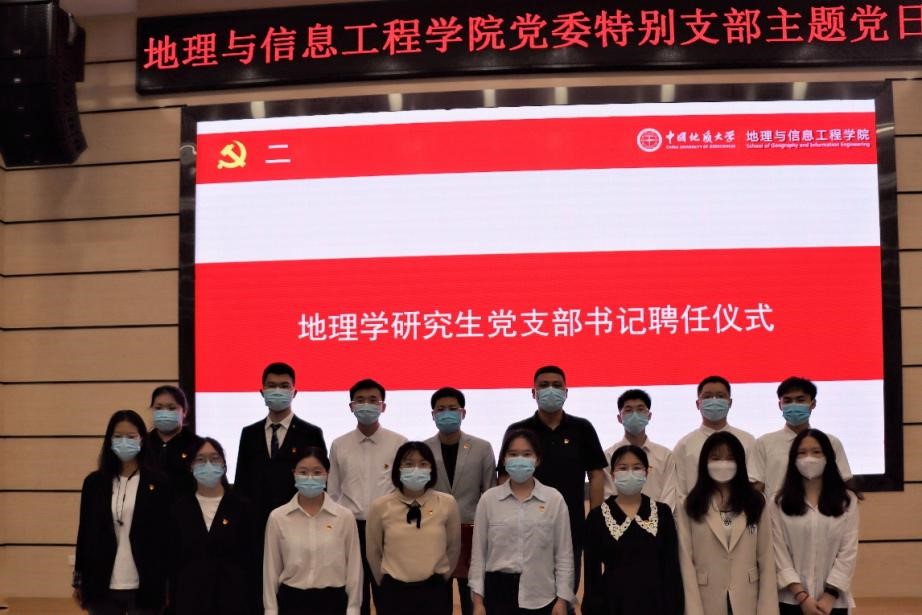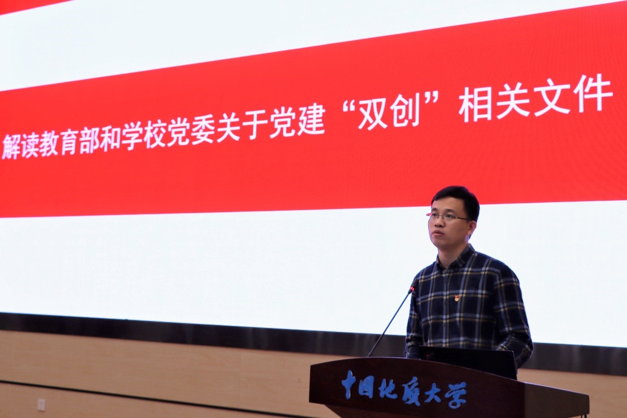 武彦斌同志宣读公司党委关于地理学科研究生党支部设置调整的决定,并对教育部和公司关于党建“双创”工作相关文件进行解读。
