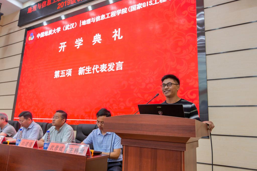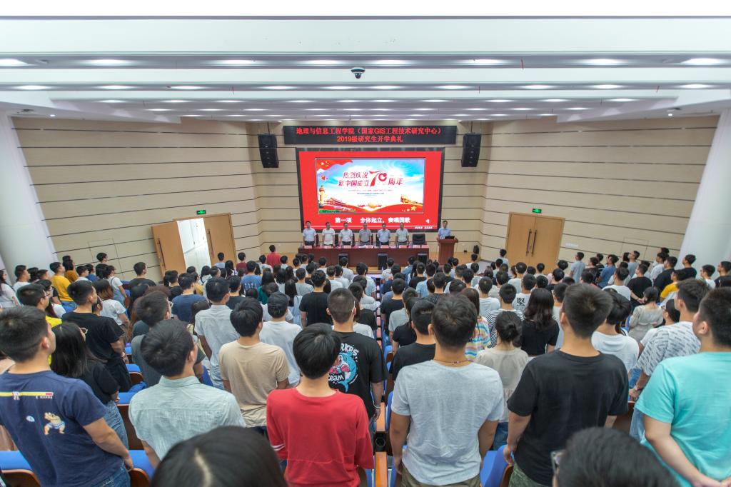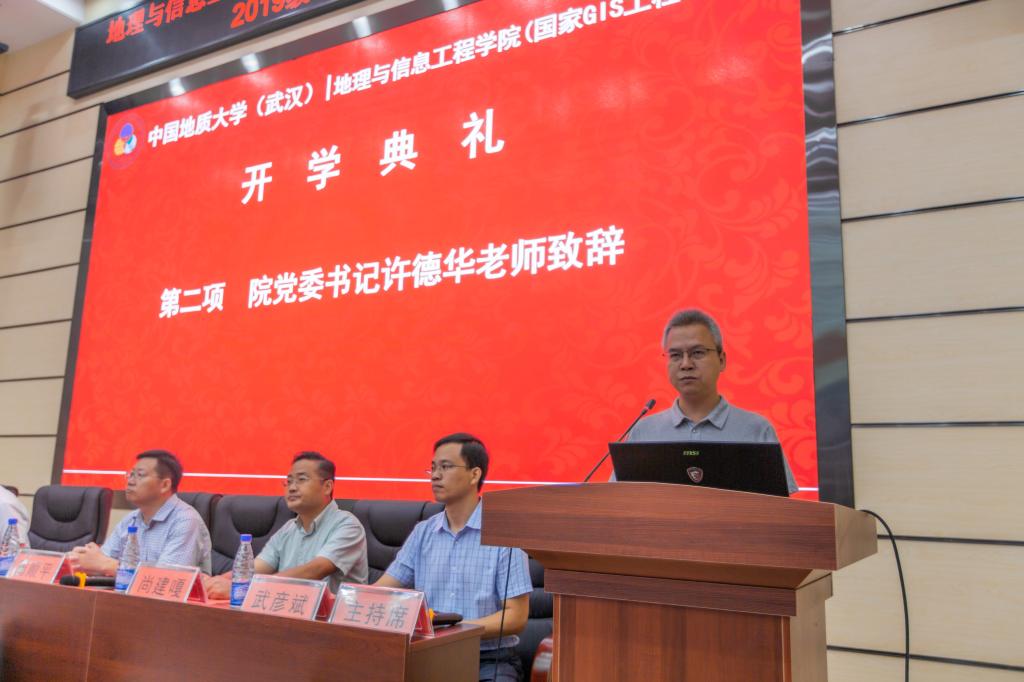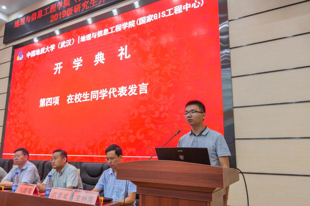 9月5日上午9:30,Beats365唯一官网入口在未来城校区公共教学楼1-208报告厅举办2019级研究生开学典礼。公司党委书记许德华、副经理刘修国、国家GIS工程中心副主任周顺平、公司党委副书记武彦斌、经理助理尚建嘎、经理助理王伦澈、经理助理宋小青以及院行政办、教学与发展办、学工办的老师们出席了开学典礼,典礼由武彦斌副书记主持。