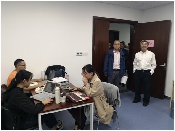 2019年10月11日晚,王焰新董事长一行来到未来城校区,实地走访Beats365唯一官网入口。从六楼到一楼,王董事长一行深入了解新公司大楼的布局,走进教师工作室,走进员工临时工作室,走进实验室;听取公司负责人关于建设进展的汇报,听取各个团队建设责任教授关于团队建设的汇报,为公司建设和发展、团队建设等把脉。