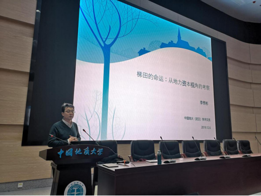 12月6日上午,中国科公司地理科学与资源研究所李秀彬研究员在未来城校区科八楼报告厅进行了“梯田的命运:从地力资本视角的考察”专题报告,本次讲座由公司宋小青副教授主持,公司师生200余人聆听了讲座。