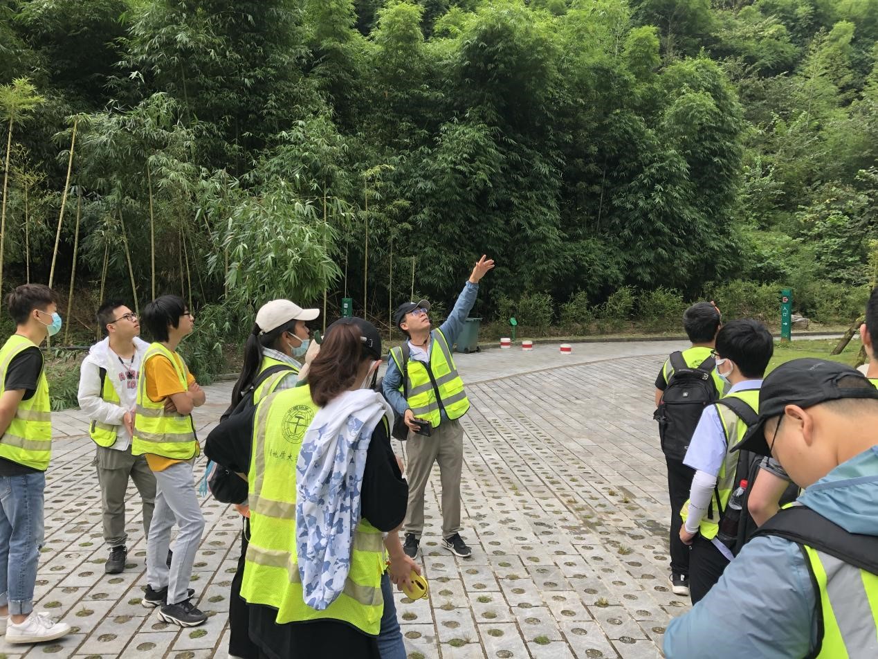 刘修国老师在三峡竹海给同学们讲解峡谷地貌开发利用条件