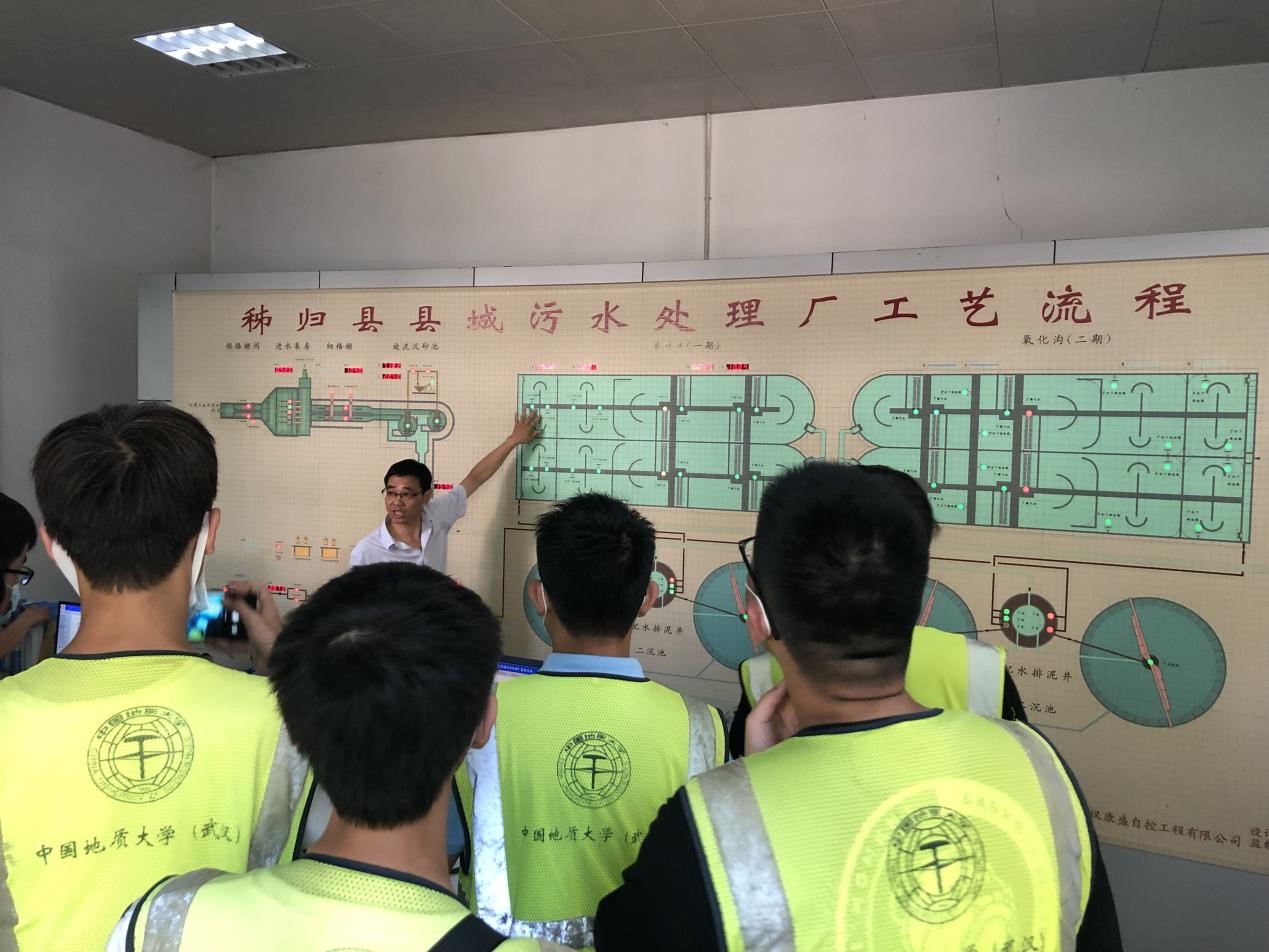 秭归污水厂的专家给同学讲解“污水处理工艺流程”