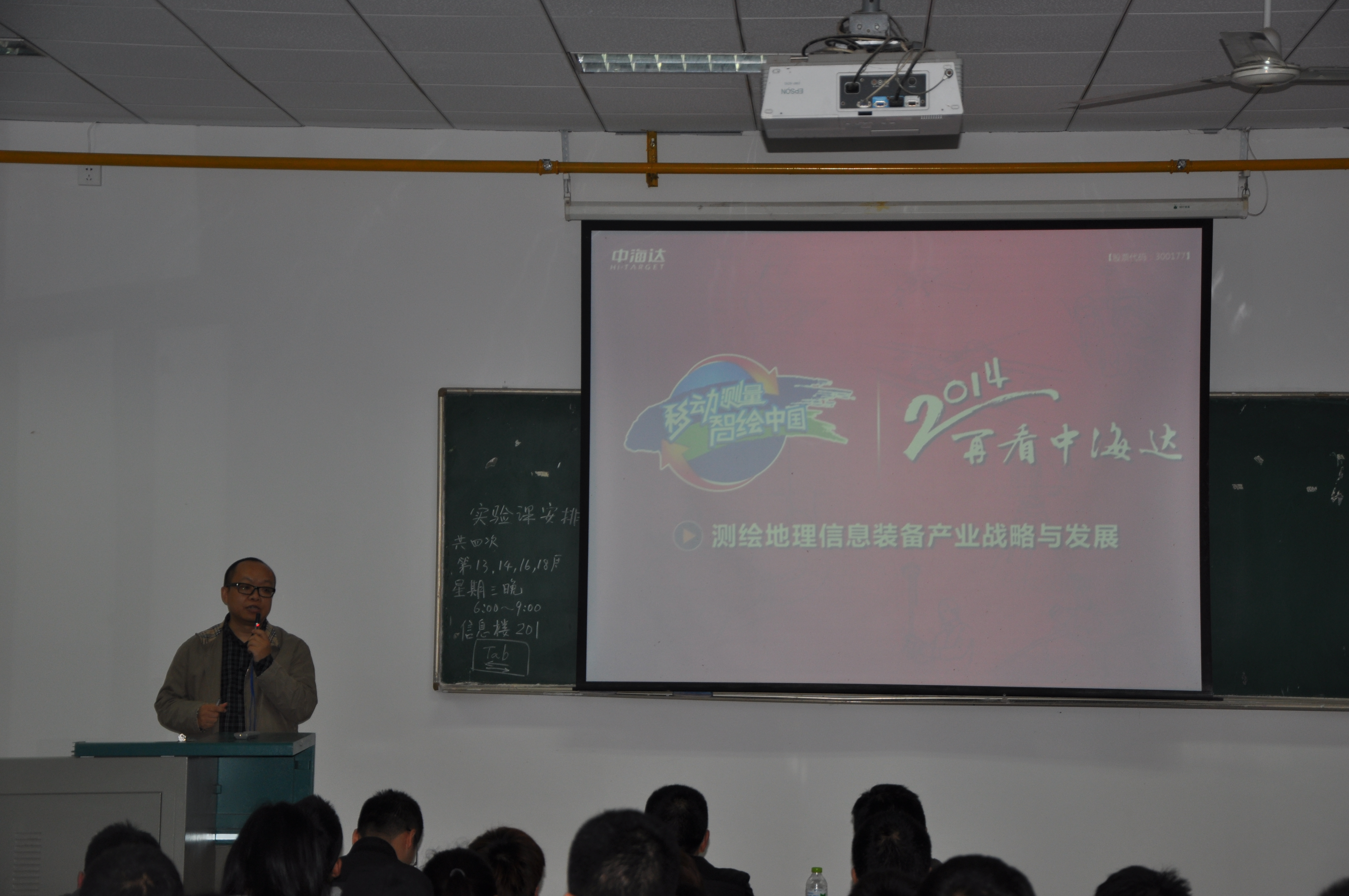 启动仪式结束后,中海达卫星导航技术股份有限公司副总裁胡炜先生为大家进行“测绘地理信息装备产业战略与发展”的学术报告。在报告中通过PPT的方式,采用图片与视频相结合,让同学们对中海达公司有了进一步的认识,同时也通过向同学们展示新型的测绘装备及测绘技术,让同学们进一步了解到测绘工程专业的发展前景,对自己未来的工作方向有了一个更加深入的了解。