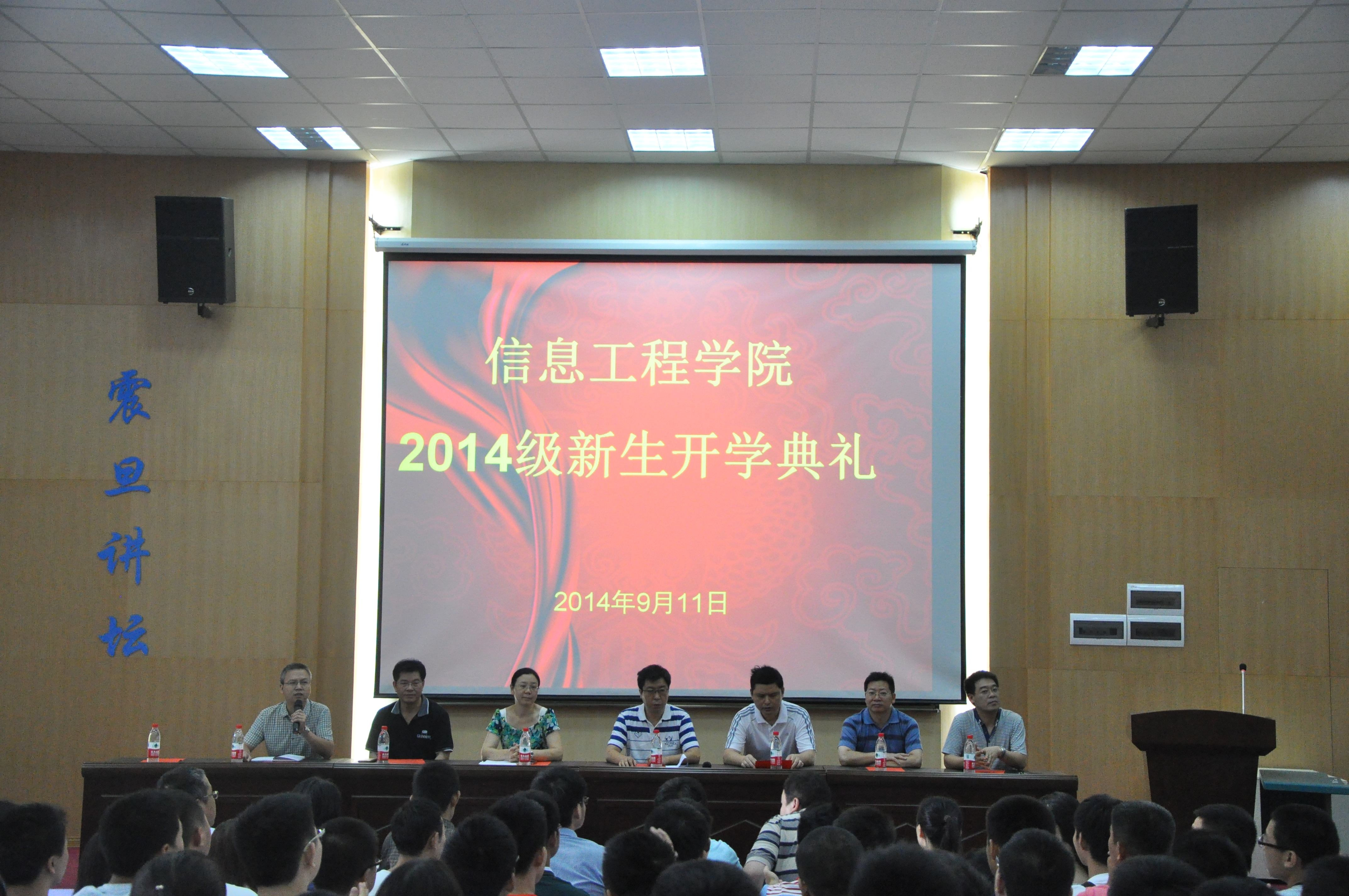 2014年9月11日上午,信息工程公司2014级新生开学典礼在教三楼109教室隆重召开,开学典礼由党委副书记许德华老师主持,全体院领导及部分专业老师出席典礼,2014级新入学本科生与研究生全体到场。