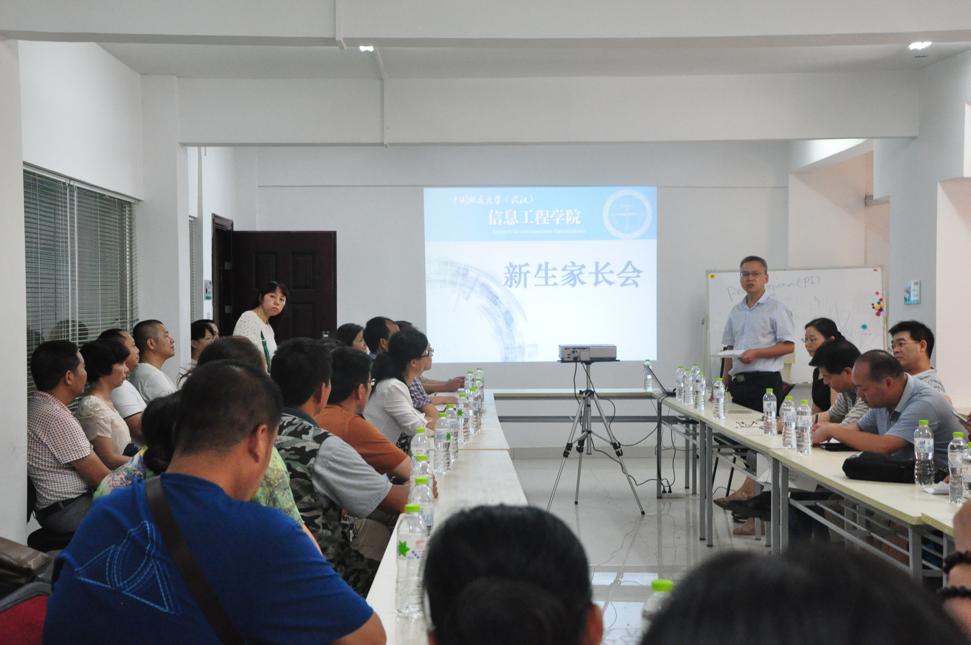 9月9日下午2点,信工公司在老员工支持中心3号学习室召开了2015级新生家长见面会。信工公司公司党委书记黄菊,副经理胡友健、刘修国,副书记许德华和部分教师参加了此次与家长的见面。