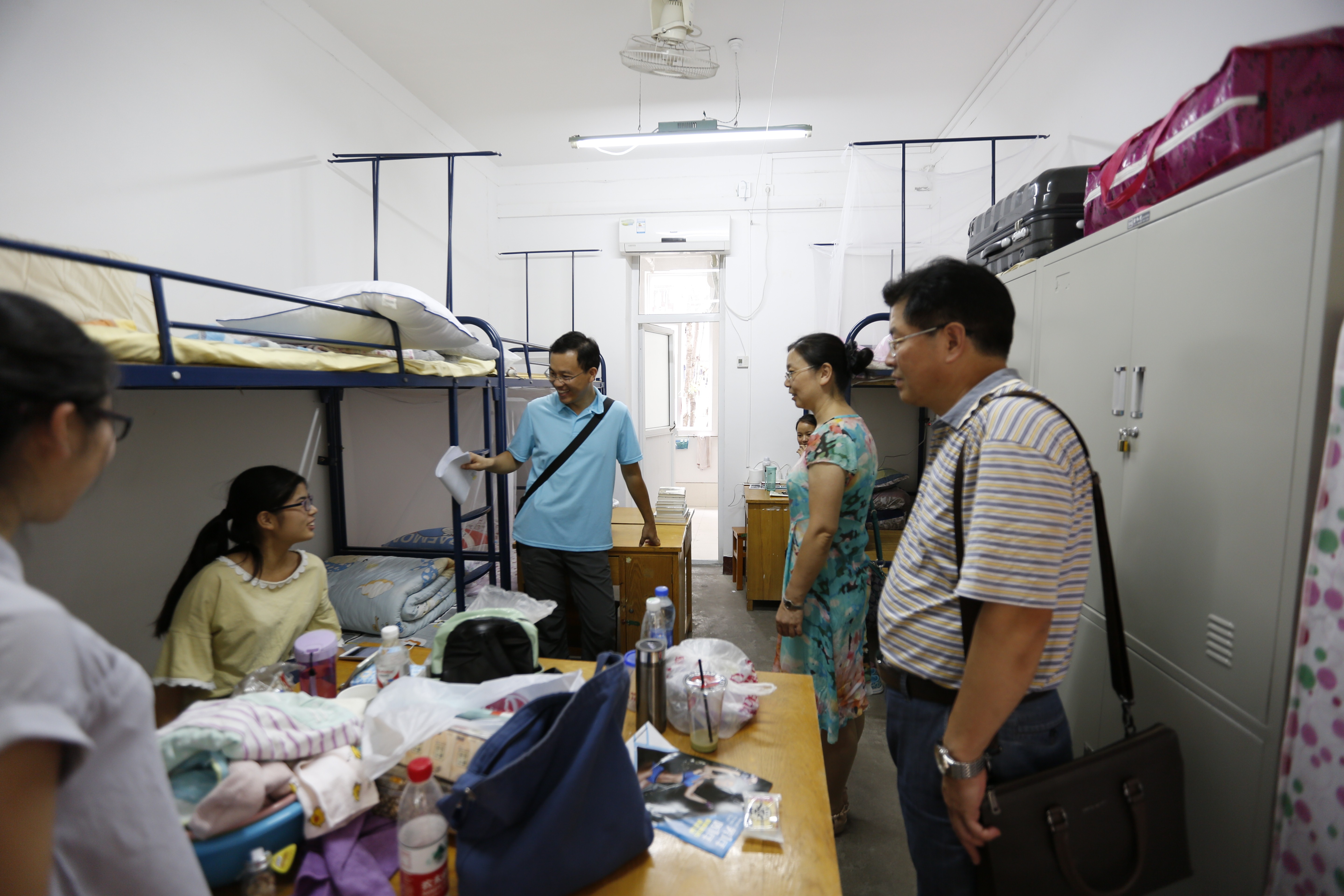 9月4日下午4点,为更好的了解新生入住情况,信工公司经理谢忠,党委书记黄菊,副经理胡友健,党委副书记许德华以及各年级辅导员一同走访慰问2016级全体新生宿舍。
