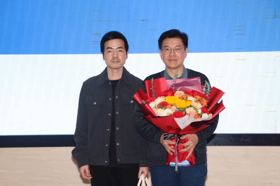 公司举行“敬老迎新”离退休教师荣休仪式。2025年新进教师代表范浩文为退休教师代表胡友健献花。胡友健对公司党委的关心关怀表示感谢,勉励公司全体教职再接再厉,为公司建设发展贡献力量。