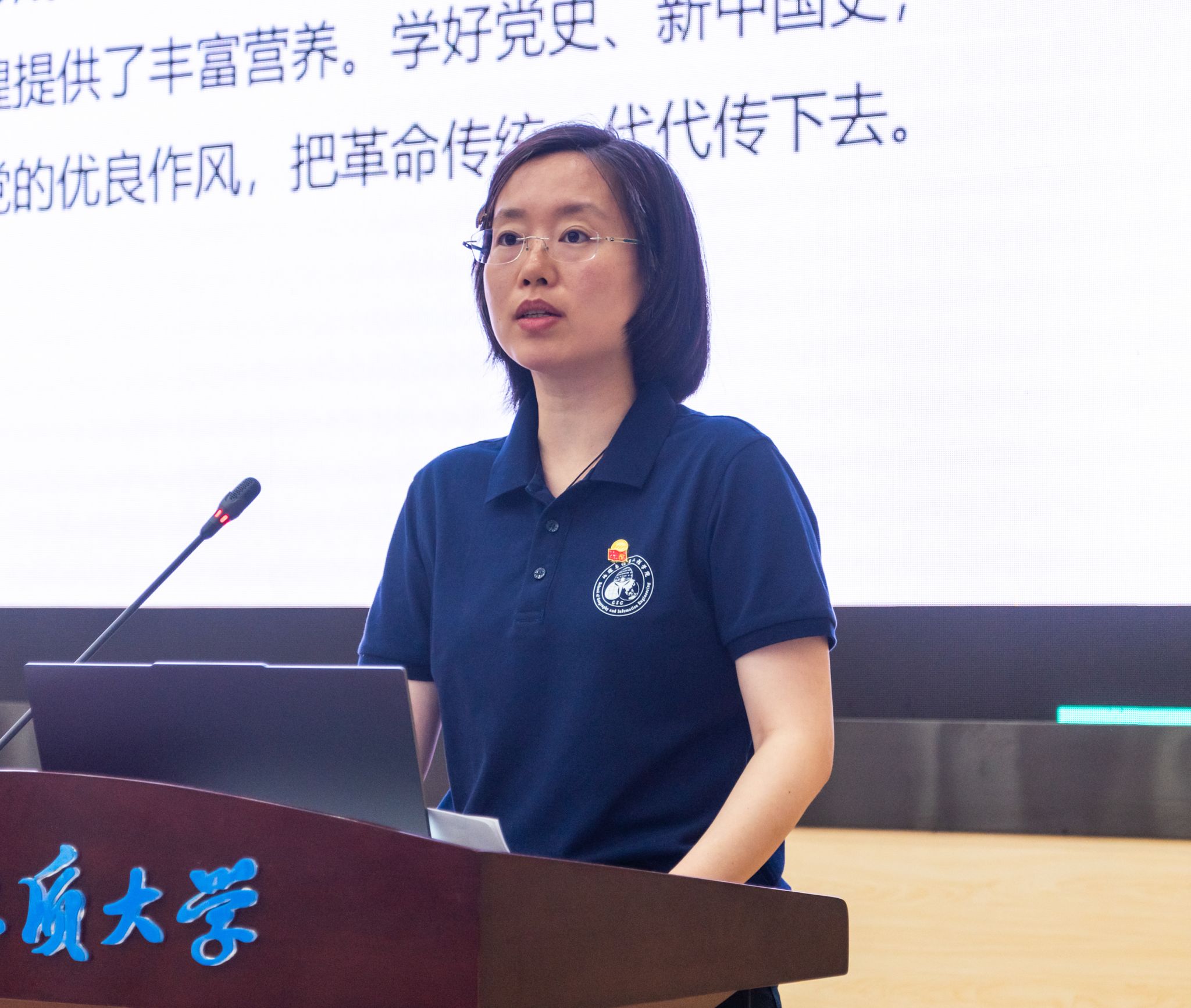 “党史我来讲”主题宣讲环节,十位师生党员结合专业特色和红色党史,共同打造了一场生动的党史学习教育大课。王广兴老师讲述红旗渠精神、张纫兰老师解码青年学“四史”路径、龚君芳老师剖析百年党史智慧,张恪老师致敬英雄“牛保才”,四位老师精彩的讲述让现场听众真切感受到历史的温度。杨英重述“遵义会议和长征精神”,谢羽讲述一场跨世纪的科技自立自强接力,陈庆龙诠释“延安精神”,黄嘉华讲述 “马灯的故事”,韦意还原烈士绝笔家书,巫莉娟再现“武汉空战”,6位员工党员讲述的红色故事也令现场全体党员深受触动。