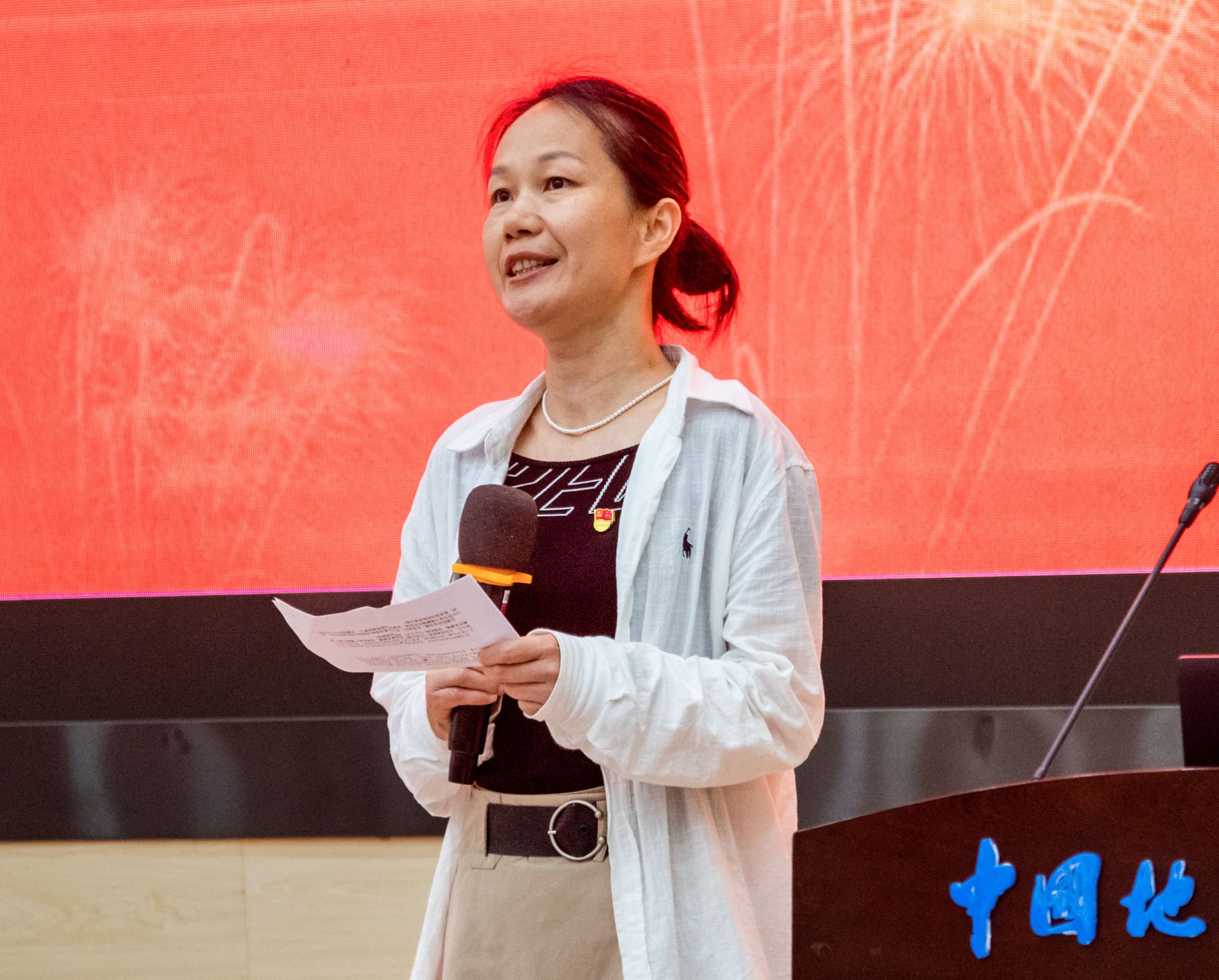 蒋怀柳作总结讲话。她代表党委组织部对公司“党史我来讲”宣讲活动的顺利开展表示祝贺,同时也10位选手的精彩表现由衷的点赞。她指出,本次活动师生同台,共讲党史,实现了教师主导与员工主讲、还原历史和映照现实、知识传授和价值引导三个统一,既有理论高度又接实践地气,是一次“沉浸式”的四史教育课堂。她强调,党史学习要回答政治之问、价值之问和时代之问,寄语地信青年从做党史解读者到当时代答卷人,做政治坚定的“明白人”、知行合一的“践行者”、新风正气的“传播者”,让共产党人的精神火炬在地信学子的奋斗坐标中永续传承!