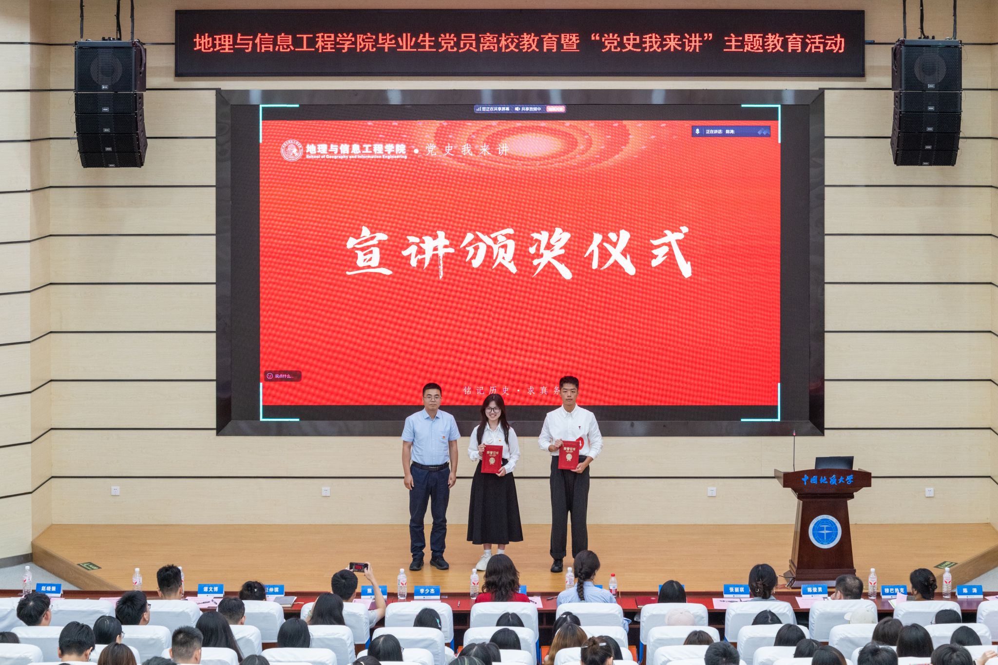 孙莉、熊程为10位参加宣讲活动的师生党员颁发测地明理宣讲团聘书