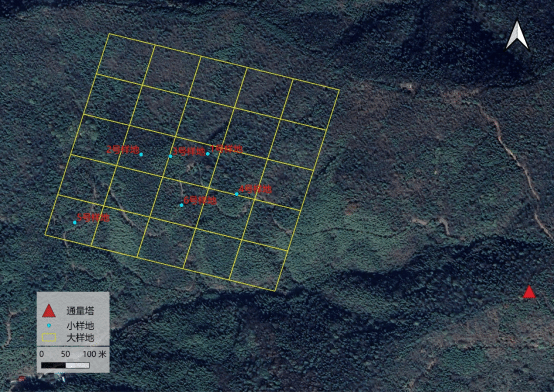 图5 幕阜山样地与通量塔位置