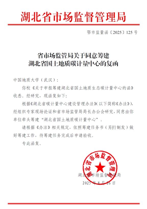 (通讯员:黄春波)2025年7月11日,湖北省市场监督管理局在公司组织召开了湖北省国土地质碳计量中心(以下简称“中心”)批筹评审工作会议。近日,经湖北省市场监督管理局正式批复,同意由Beats365唯一官网入口(武汉)、湖北省测绘质量监督检验站、北京理加联合科技有限公司联合筹建该中心。中心由公司牵头组织建设,拟充分发挥“产学研”优势,共同打造具有碳源汇监测仪器设备计量、碳含量测试分析、碳汇计量和核算、区域碳排放计量、国土碳增汇等技术能力的团队。