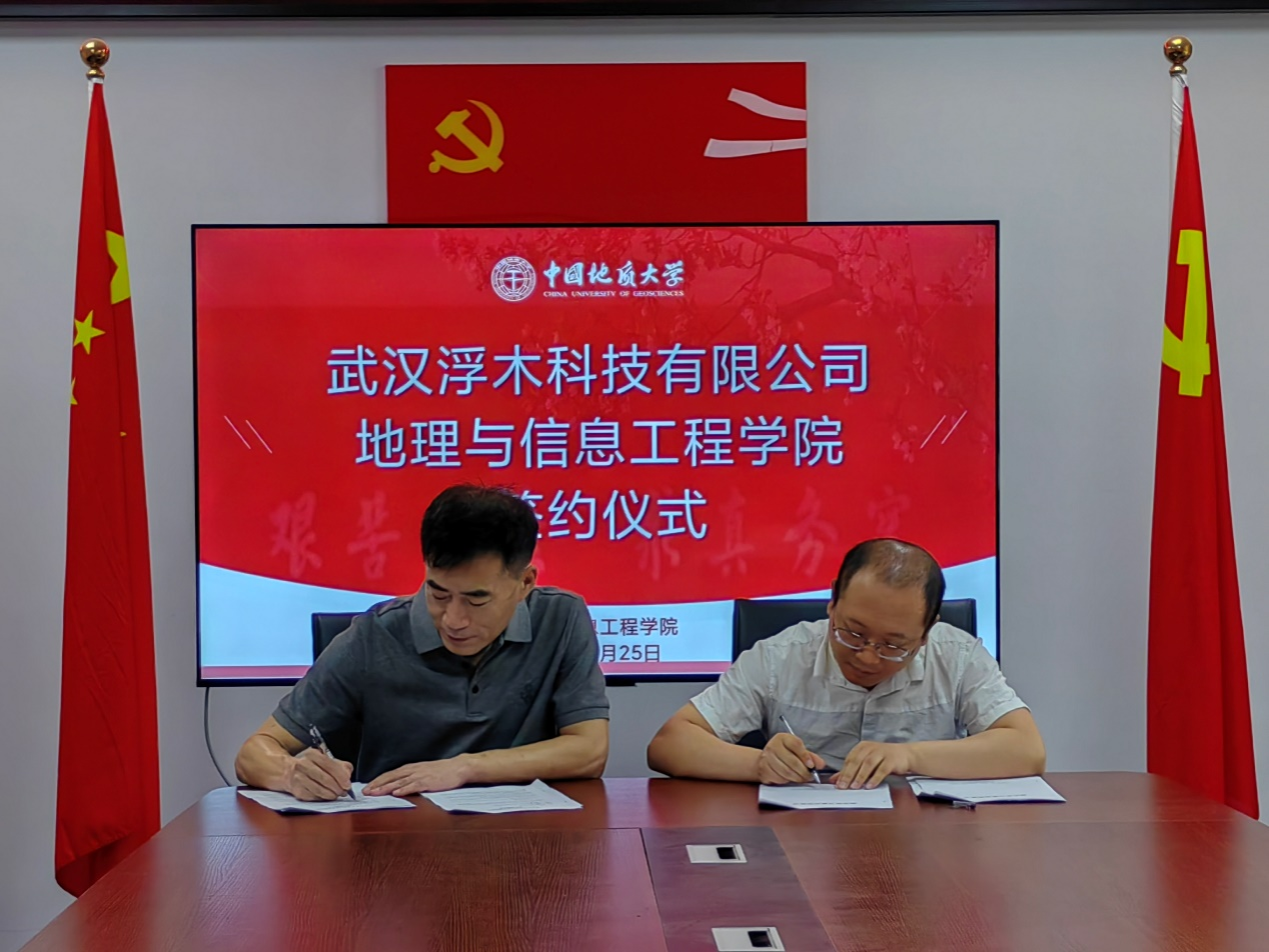 6月25日上午,武汉浮木科技有限公司董事长翁杰和总经理刘鹏到访公司,与公司签署了《就业实习基地协议书》和《浮木云•产品设计开发智能助手软件捐赠协议》,公司党委书记孙莉、副经理徐景田、党委副书记熊程、空间信息系主任周琪和杨乃老师等人参与了合作协议签署仪式。