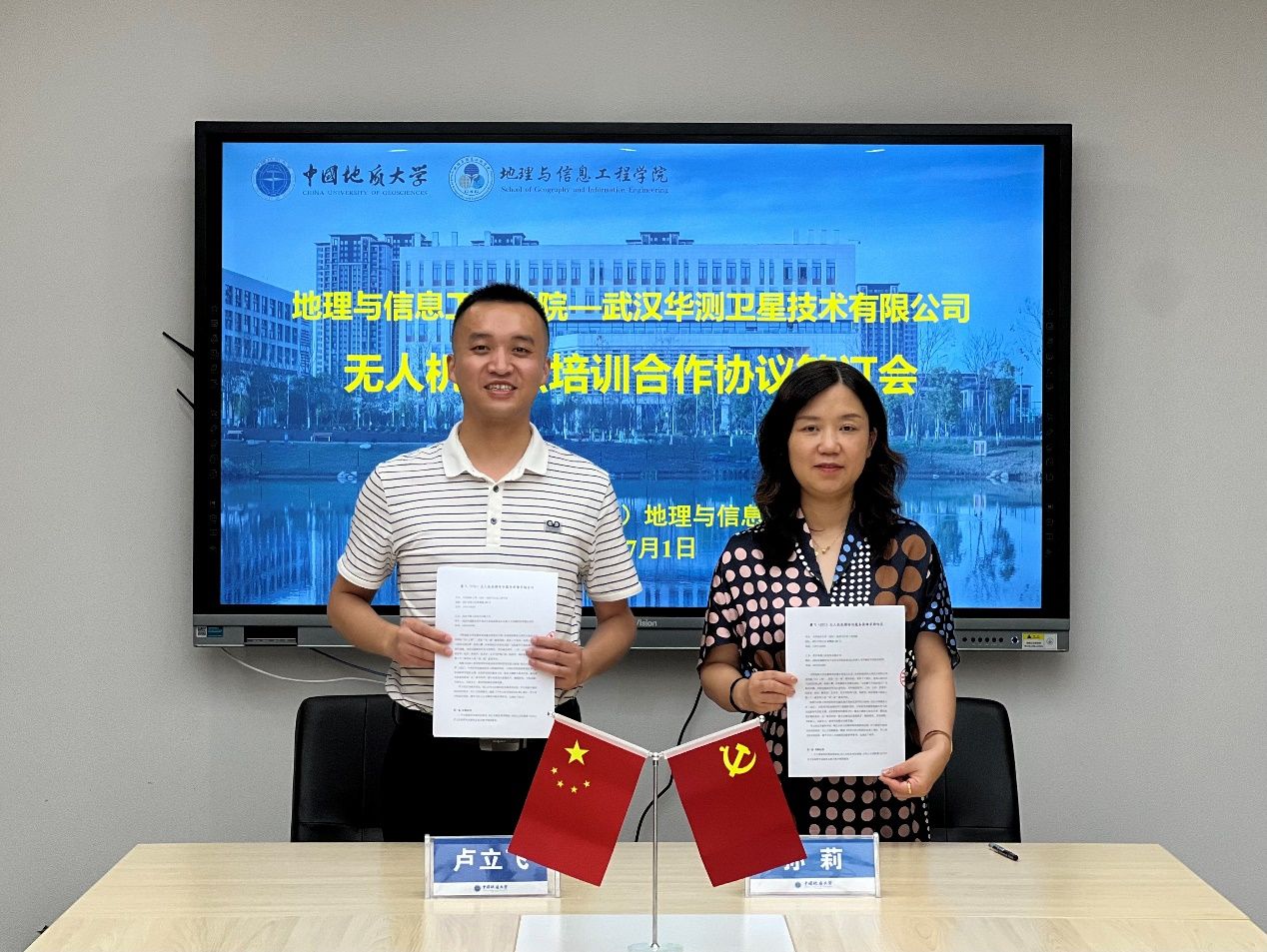 7月1日上午,上海华测导航技术股份有限公司湖北省公司经理卢立飞、湖北省公司高校解决方案经理陈明双、无人机飞行公司拓展经理周泉到访公司,与公司签署了无人机执照培训合作协议。公司党委书记孙莉、副经理宋小青,以及无人机教学团队骨干教师参加了合作协议签署仪式。