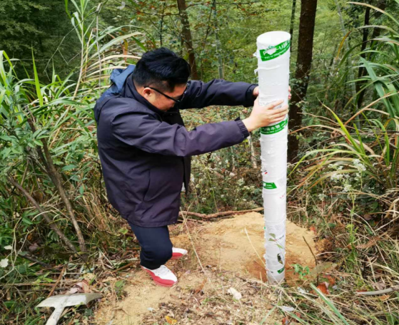 为推进公司幕阜山丘陵地球关键带与地表通量野外科学观测站(以下简称“观测站”)的科研平台建设,加快提升公司地理学、测绘科学与技术等团队建设水平。2024年11月23日-29日,公司黄春波、林伟华老师和秦见、丁明杨、吴天琪、范孟辉等研究生两次赴咸宁市崇阳县桂花林场开展森林大样地勘察选址、边界桩点埋设、网格桩点布设等工作。
