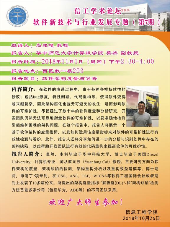 信工学术论坛第122期:华中师范大学计算机公司 莫然 副教授