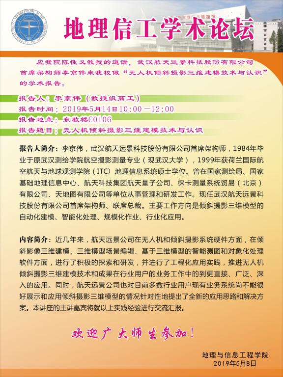 地理信工学术论坛第130期:航天远景首席架构师李京伟