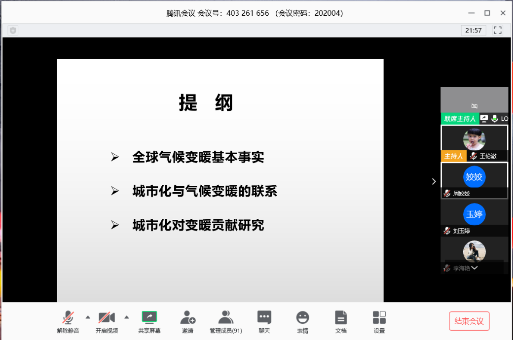 2020年4月8日下午,中山大学大气科学公司李庆祥教授应邀通过公司在线授课平台进行了“城市化与气候变暖”主题讲座,本次讲座由王伦澈副经理主持,120余名师生在线聆听了讲座。