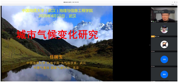 2020年4月15日下午,国家气候中心首席专家任国玉研究员应邀通过公司在线授课平台进行了“城市气候变化研究”主题讲座,本次讲座由王伦澈副经理主持,120余名师生在线聆听了讲座。