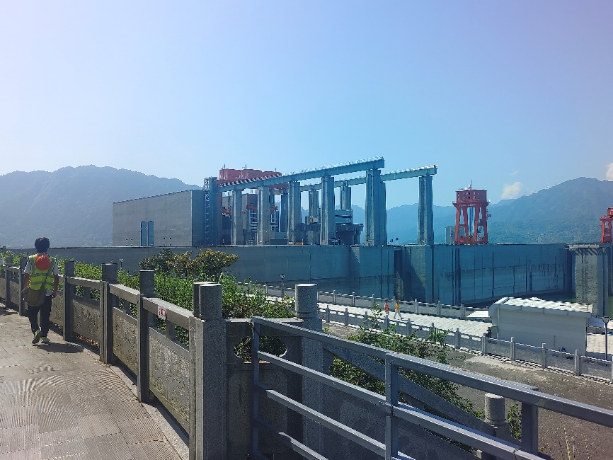 同学们来到截流纪念园,四周层峦起伏的群山与三峡工程映入眼帘。由观景台一侧向远处眺望能看到五级船闸,对应不同体量船只通行三峡的“爬楼梯”方式;而在后面看到的船只升降机,则对应船只穿越大坝的“坐电梯”方式。若非大家亲眼所见,也许不会想象出书上的“世界第一水利工程”是何等壮观。让人联想到“更立西山石壁,截断巫山云雨,高峡出平湖”,“神女应无恙,当惊世界殊”。人门已凭借自己的力量,改造着自然环境。