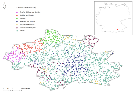 基于德国慕尼黑的POI数据的城市功能区聚类结果