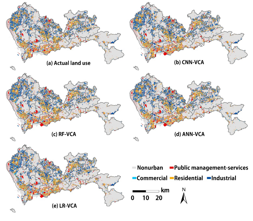 结果表明:与其它现有的VCA模型(如逻辑回归-VCA,人工神经网络-VCA和随机森林-VCA)相比,CNN-VCA模型实现了最高的模拟精度(FoM指数为0.361,景观相似度为0.948)。