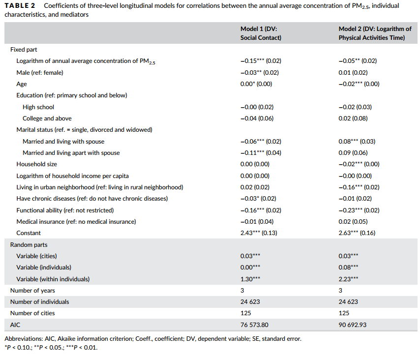 结论:因此,暴露于PM2.5下的中国老年人的抑郁症会因为体育活动和社交接触的减少而加重。另外体育活动和社交接触的积极作用会随着PM2.5浓度增大而降低。(译:董泽楷)
