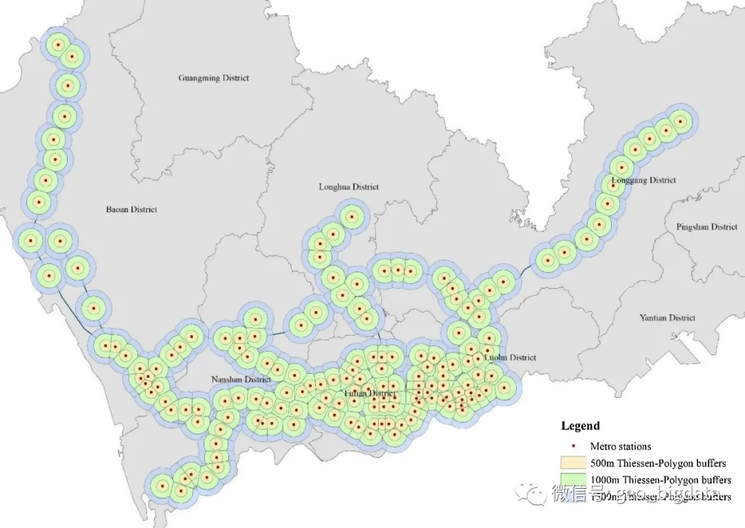 图1 深圳市地铁站点缓冲区分布