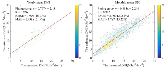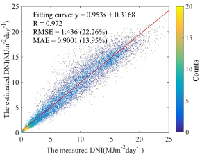 图2. 太阳法向直接辐射量估算精度验证图