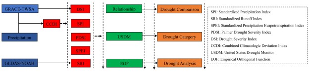 干旱是具有复杂的、重复发生的、广泛分布的、在不同空间尺度上最少被识别的、对农业生产、生态保护和社会经济发展具有不利影响的极端天气现象。干旱可以根据发生时长的不同及水分赤字的组份的不同等因素,分类为气象干旱、农业干旱、水文干旱及社会经济干旱。纵观历史,干旱所造成的损失不计其数。自1960年以来,在全球变化的背景下,随着人口的增加和社会经济的发展,水资源供需矛盾越来越突出,干旱在全球造成的消极影响越来越严重。然而,尽管干旱的测定和表征虽然有些复杂,但干旱的研究对增强节水意识、避免干旱风险的影响具有重要意义。