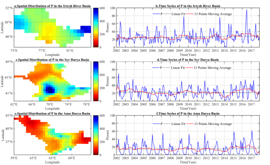 图 4 中亚主要流域降水的时空分布