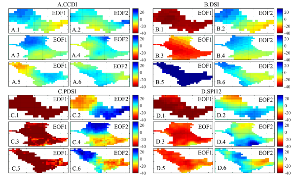 图 7中亚主要流域多种干旱指数的干旱事件的EOF分析