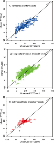 该研究在较大空间尺度上分析了亚洲地区泥炭沼泽的微型生物,鉴定和统计了大量的生物标本,发现了一个新物种(Nebela jiuhuensis, Qin 2016),汇编了亚洲泥炭湿地微型生物物种分类名录,建立了物种数据库和环境因子数据库。本研究基于微型生物大数据构建了亚洲地区泥炭地的生物属种与水位的转换函数模型(图2)。结果表明,在水位梯度上,大部分物种表现出明确的干/湿度指示意义,对水位和湿度具有很强的指示性。从观测值与预测值的回归结果来看,我们构建的亚洲地区泥炭湿地生物-水位转换函数模型具有很强的预测和推导能力。此外,我们还评估了不同气候或植被类型的转换函数结果,发现尽管样本量有一定差异,但结果差别不大,表明微型生物对泥炭地水位的指示意义具有普遍适用性。