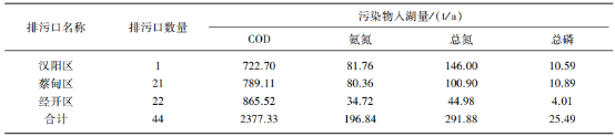 解析污染来源,是后官湖治理的关键也是难题。部分学者采用实测的方式,核算了后官湖周边的污染物来源,提出了后官湖流域污染的控制对策,具有一定的借鉴意义。但后官湖由4个子湖组成、流域范围内水系较为复杂,且覆盖了武汉市的三区八街办,其污染来源既有来自工业和污水处理厂的点源、又有流域内农村生活生产的面源,仅通过实测方式无法全面的解析后官湖的污染来源、更无法确定不同行政区的污染贡献。因此本研究采用实测法与经验公式法相结合的量化方法,核算了后官湖流域的污染入湖量,并解析了不同污染源、不同行政区的污染负荷量和贡献率。