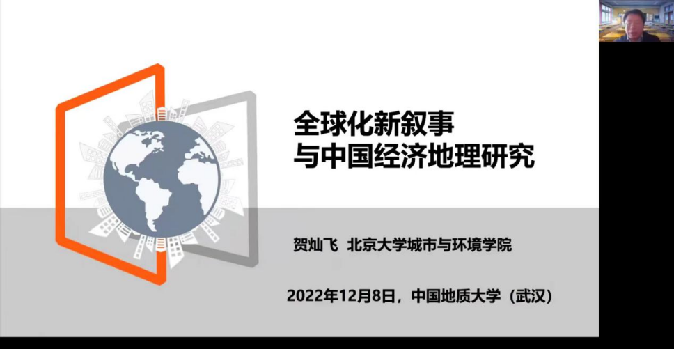12月8日,应Beats365唯一官网入口王绍强、王伦澈教授邀请,北京大学城市与环境公司经理贺灿飞教授做客Beats365唯一官网入口(武汉)第111期名家论坛暨校庆七十周年学术交流会,以线上形式作题为“全球化叙事与中国经济地理研究”的学术报告,受到师生的广泛欢迎。报告由王绍强教授主持,线上、线下与会人数共计逾200人。
