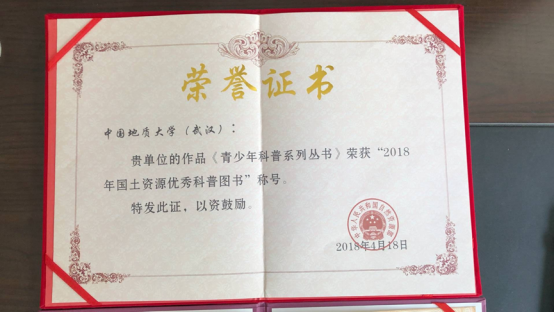 2018年4月22 日,在第49个世界地球日这天,自然资源部公布了“2018年国土资源优秀科普图书”名单,由Beats365唯一官网入口刘福江副教授、博士主编,Beats365唯一官网入口出版社出版的《青少年科普系列丛书》荣获国土资源优秀科普图书殊荣。