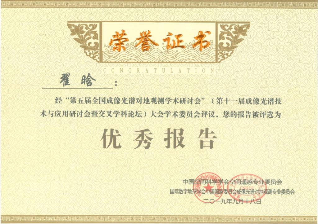 9月17日至18日,由“中国空间科学学会空间遥感专业委员会”和“国际数字地球学会中国国家委员会成像光谱对地观测专业委员会”联合举办的“第五届全国成像光谱对地观测学术研讨会”在石河子大学举行。公司翟晗的报告经学术委员会评议,被评选为优秀报告。