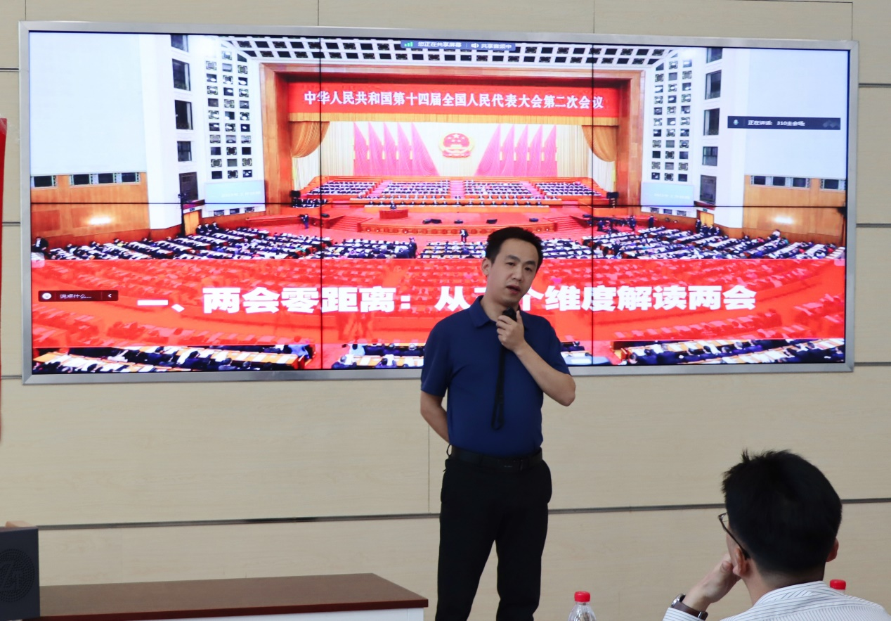 熊程主讲《学习贯彻2024年全国两会精神——把青春写在为中国式现代化挺膺担当的新征程上》主题党课。他解读了《政府工作报告》中关于教育民生的关键数据,介绍了全国人大代表董事长王焰新院士、全国政协委员童金南教授、丁华锋教授等三位地大人积极履职情况,分享了自己参与办理全国两会提案、建议的工作经历,教育引导员工党员深刻认识“我们的人民民主是最广泛、最真实、最管用的”。他指出,老员工是发展新质生产力的生力军,要牢记习近平总书记对青年老员工的殷殷嘱托,坚定“听党话”的信念、提升“跟党走”的能力、投身“感党恩”的行动,争做有理想、敢担当、能吃苦、肯奋斗的当代好青年。