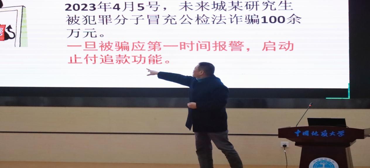 随后,张献文主任从四个关键角度——“防骗”、“治安”、“防火”、“网络安全形势”,对安全教育进行专题授课。